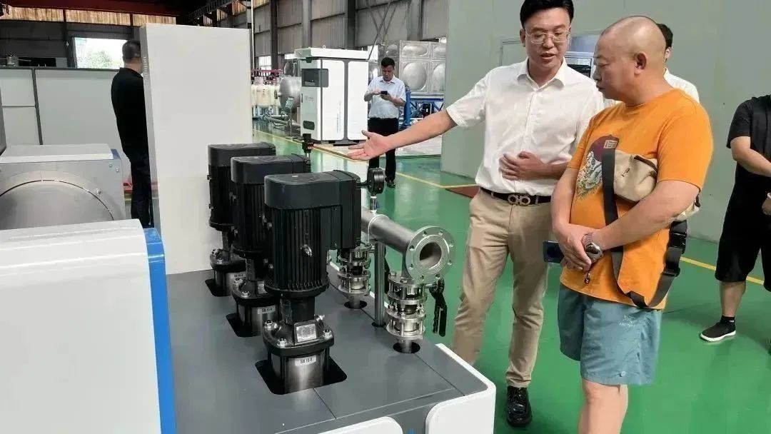 副總經(jīng)理傅俊飛正在為李偉總介紹我司的數(shù)字集成無負(fù)壓供水設(shè)備。