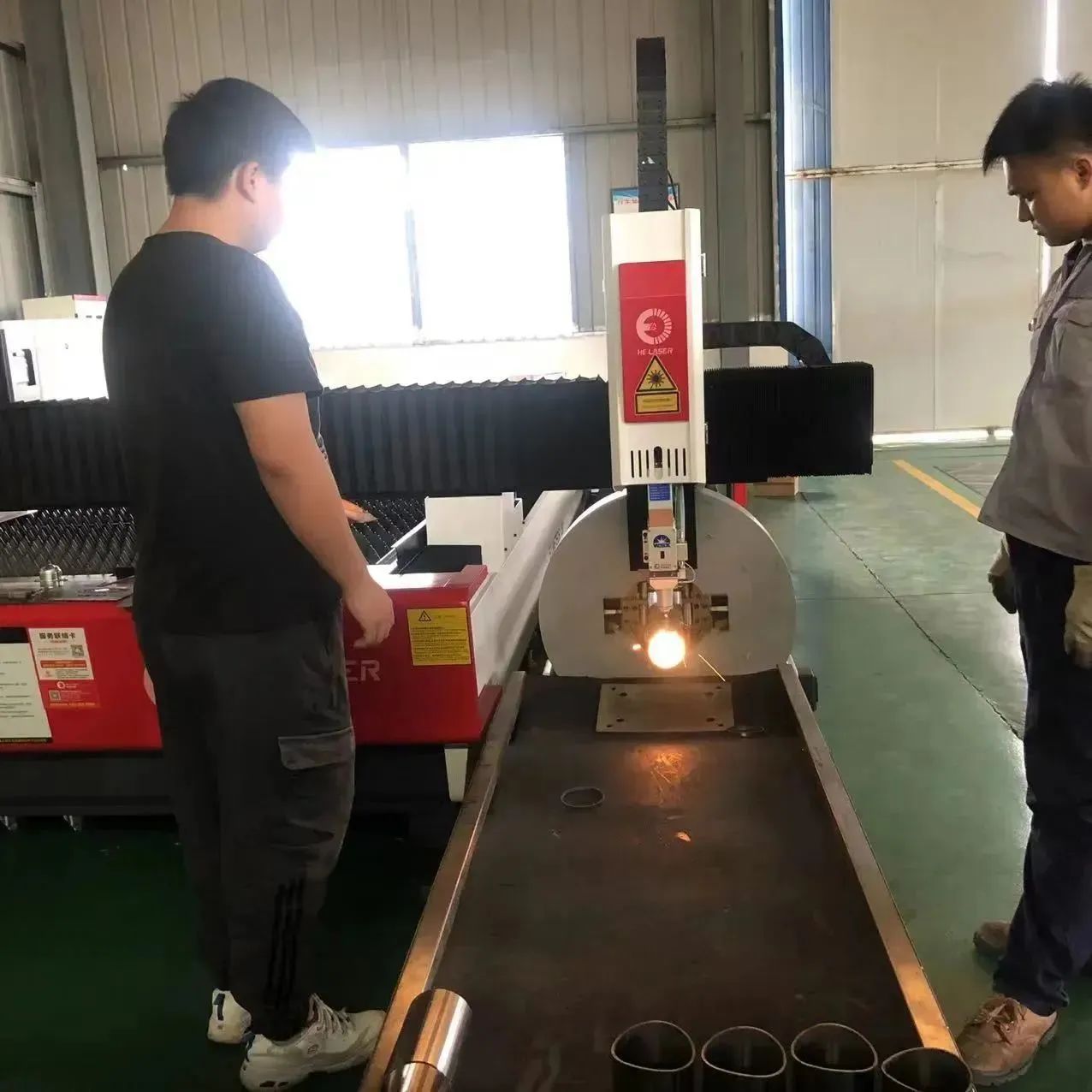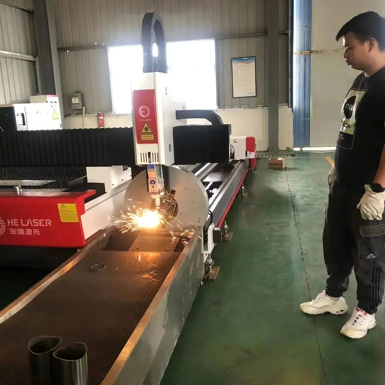 以前車間老的加工方式是采用帶鋸和鉆孔機(jī)、特制的銑床來(lái)實(shí)現(xiàn),這樣的方式既不能保證美觀,也不能保證精度,還占用了大量的人力成本和工料裝夾、轉(zhuǎn)運(yùn)的時(shí)間成本。因此HES1-4020-3000T6022A板管一體激光切割機(jī)的優(yōu)勢(shì)就逐步凸顯出來(lái)了。